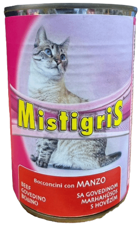 שימורי 450 גרם לחתול. נתחי בקר לחתול.