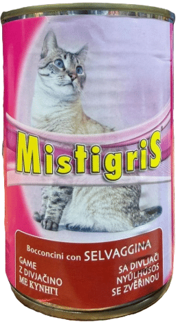 מיס טיגריס . נתחי בשר צייד לחתול . 405 גר’.