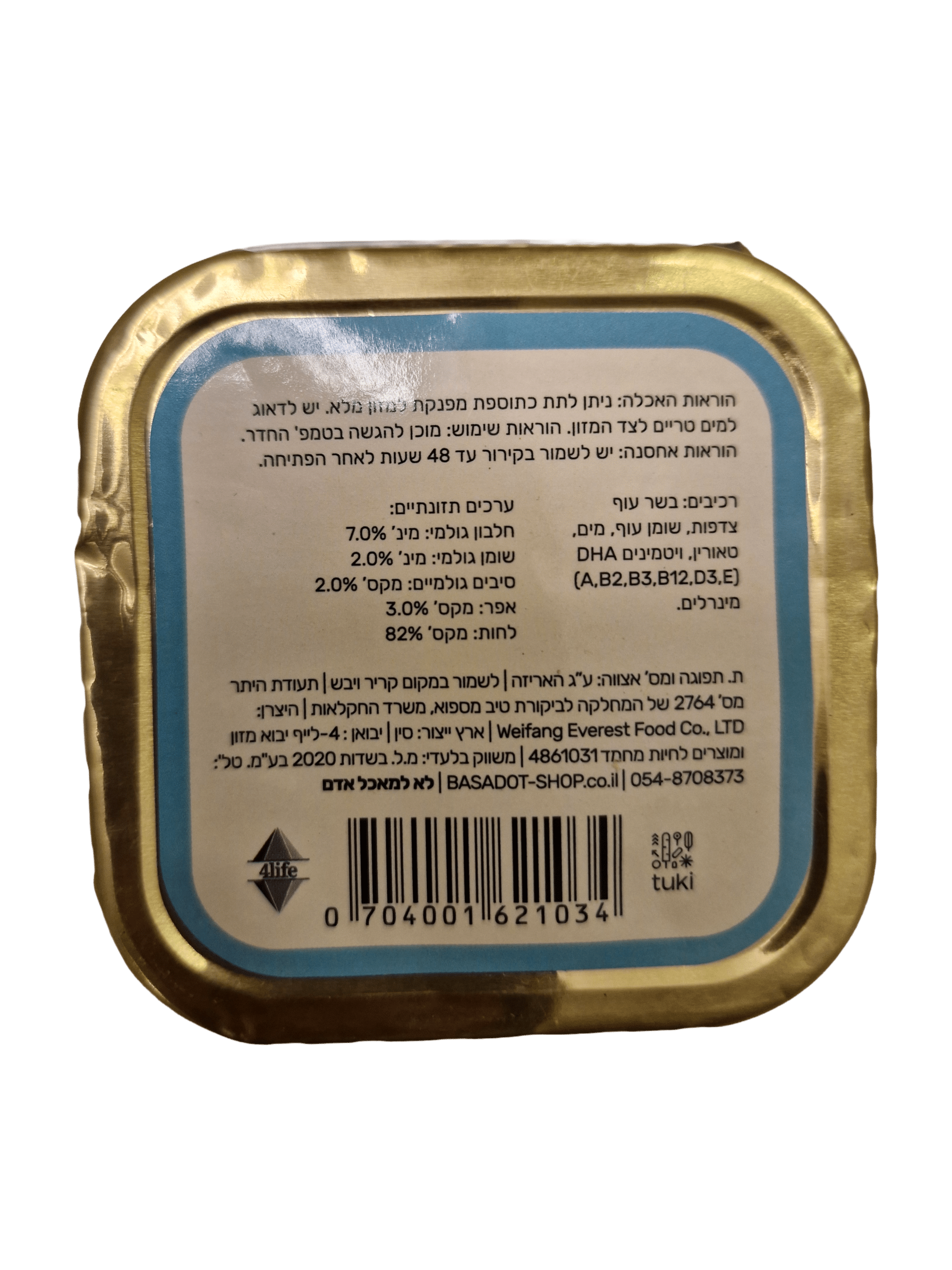 שימורי 100 גרם לחתול. מעדן פטה טונה ועוף.
